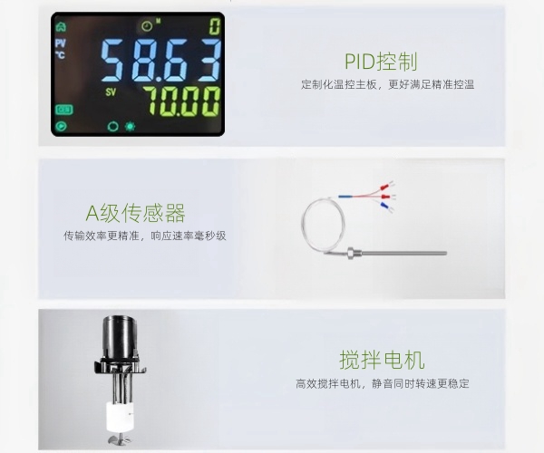 ∎检定恒温槽配备自研智能化微电脑温度控制系统,也是检定槽维持恒温性能的一个重要环节之一。 ∎检定槽由加热系统、制冷系统、温度控制系统、恒温浴槽、温度搅拌装置等构成,具有合理布局,使用方便,稳定高效等优点。 ∎软件系统方便修正显示温度与实际温度的误差,温度修正分辨率高达0.001℃,使显示温度值准确无误。 ∎具有超温保护、超温鸣叫报警,可设定超温报警温度,超温时可自动切断负载。 ∎可选配RS485通讯接口,实现数据传输进行远距离控制。 ∎丰富的安全保护装置:具有断电保护功能、具有上下限温度报警设定功能、低水位保护和报警功能、温度失控保护和报警功能、加热装置具有低水位防干烧功能。 ∎高效全封闭压缩机组制冷,降温速度快,具有过热过电流等多重保护。