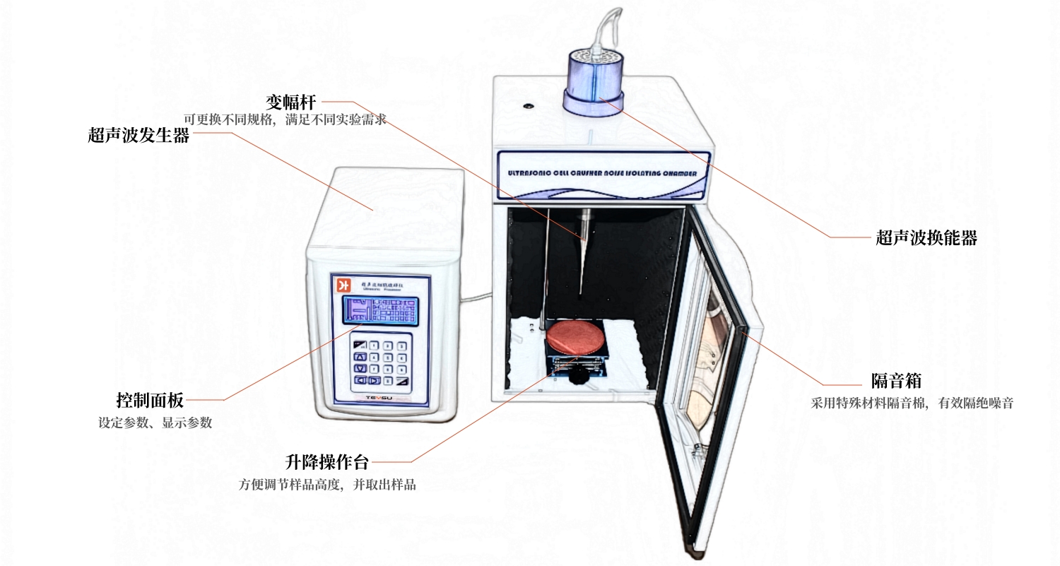 超声波细胞粉碎机(破碎仪或超声波裂解器)是一种利用强超声在液体中产生空化效应,对物质进行超声处理的多功能、多用途的仪器,能用于多种动植物细胞、病毒细胞的破碎,同时可用来乳化、分离、提取、消泡、脱气、清洗及加速化学反应等等。被应用于生物化学、微生物学、药物化学、表面化学、物理学、动物学、农学、制药等领域的教学、科研及生产。